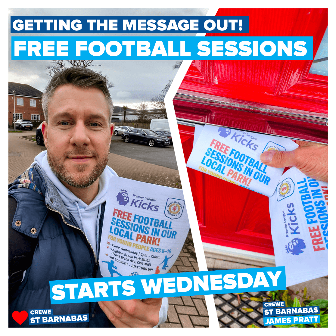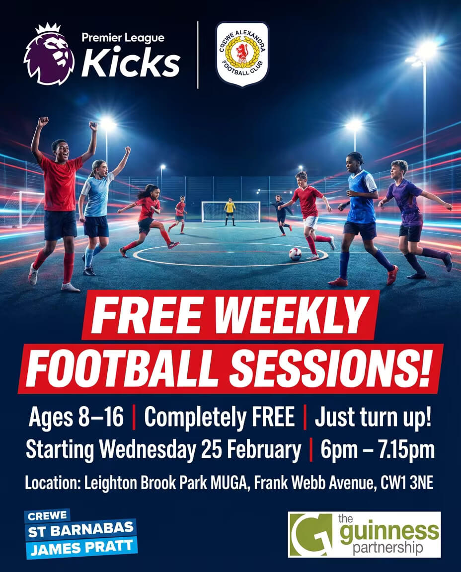 Iβm thrilled to be working with Crewe Alexandra in the Community, supported by Guinness Housing, to bring more free activities for our young people in Leighton Brook Park, right in the heart of our Crewe St Barnabas community.
