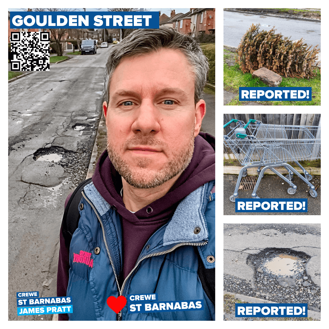 I've been back out carrying out another pothole patrol on Minshull New Road, and also checking on issues along West Street and other roads in our area.