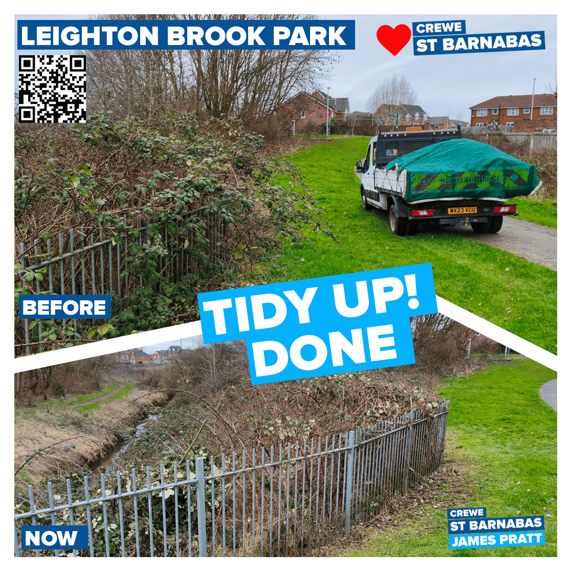 Thanks to the Parks team who responded to my recent request to tidy up the brambles around the railings in Leighton Brook Park. It's a lot tidier, and less spiky now!