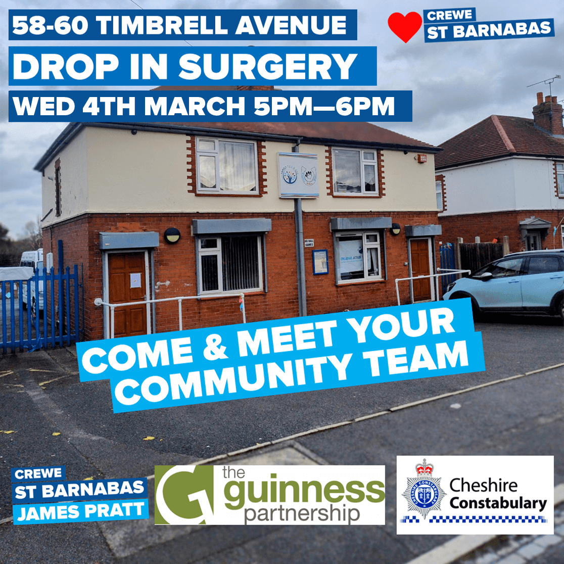 Weβll also be joined by Guinness Housing and the Crewe Police Community Team, so support and advice will be available on the night.